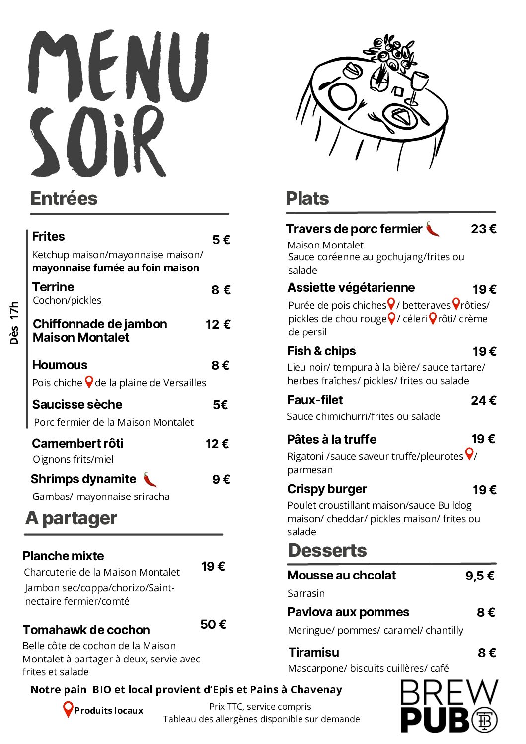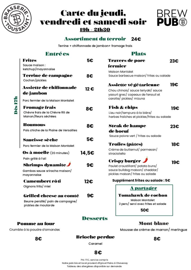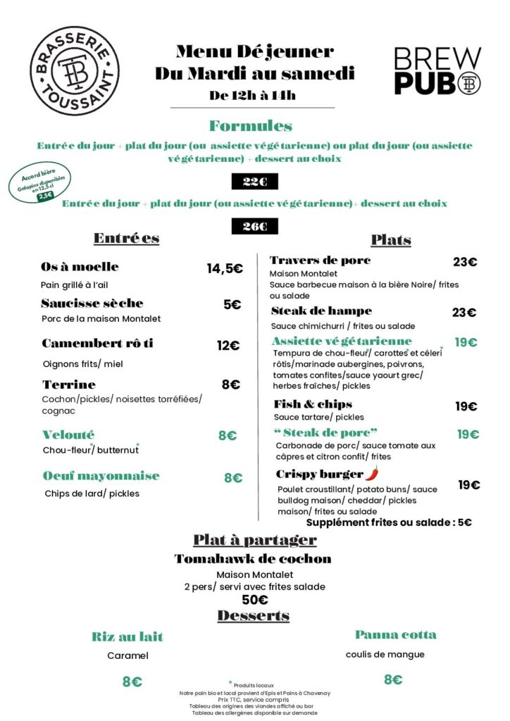 Nous travaillons en circuit court autant que nous le pouvons. La carte est donc indicative et peut subir des variations selon la disponibilité des matières premières.