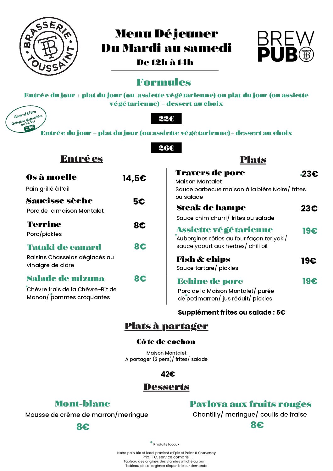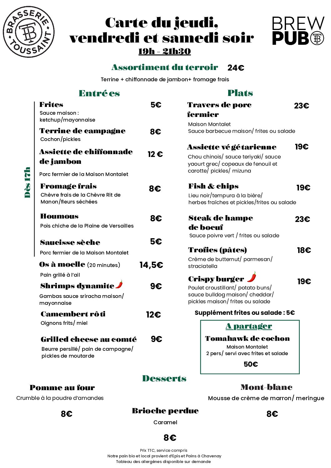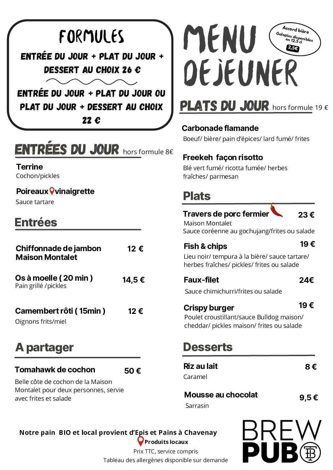 Nous travaillons en circuit court autant que nous le pouvons. La carte est donc indicative et peut subir des variations selon la disponibilité des matières premières.